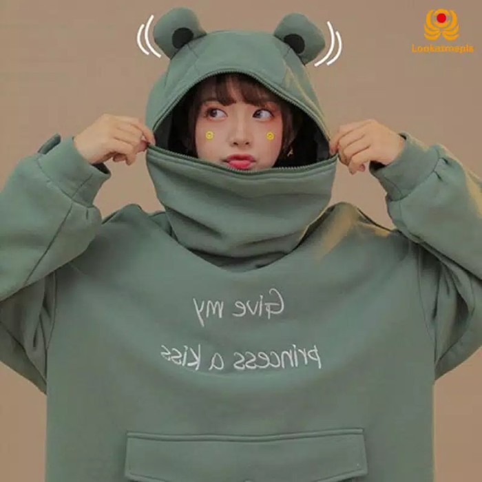 FROG HOODIE MODAKAWA WITH ZIPPER PULLOVER (SIZE TULIS DI CHAT) - ADA TULISAN, M