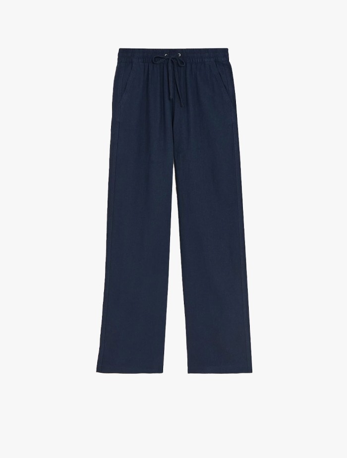 M&S - CELANA KULOT WANITA - LINEN RICH WIDE LEG TROUSERS - NAVY, UK 18/SHT