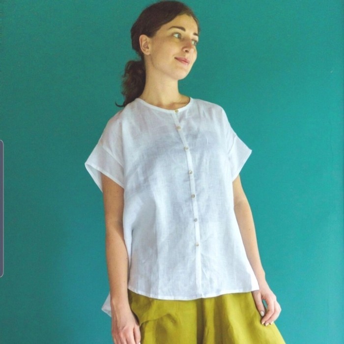 IBHA TOP/BAJU LINEN/ATASAN/BLOUSE/LINEN PREMIUM - PUTIH