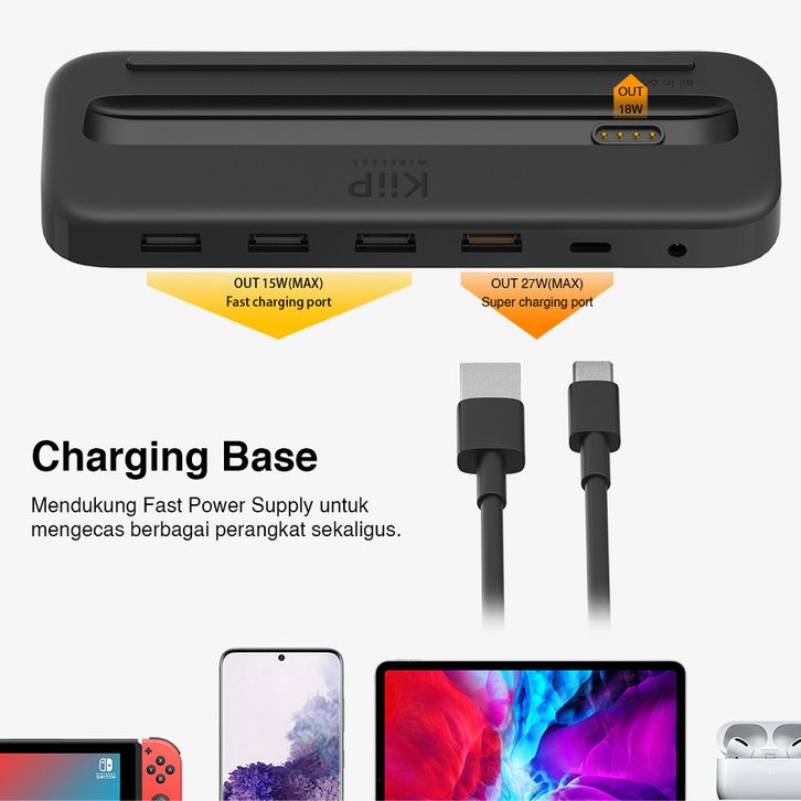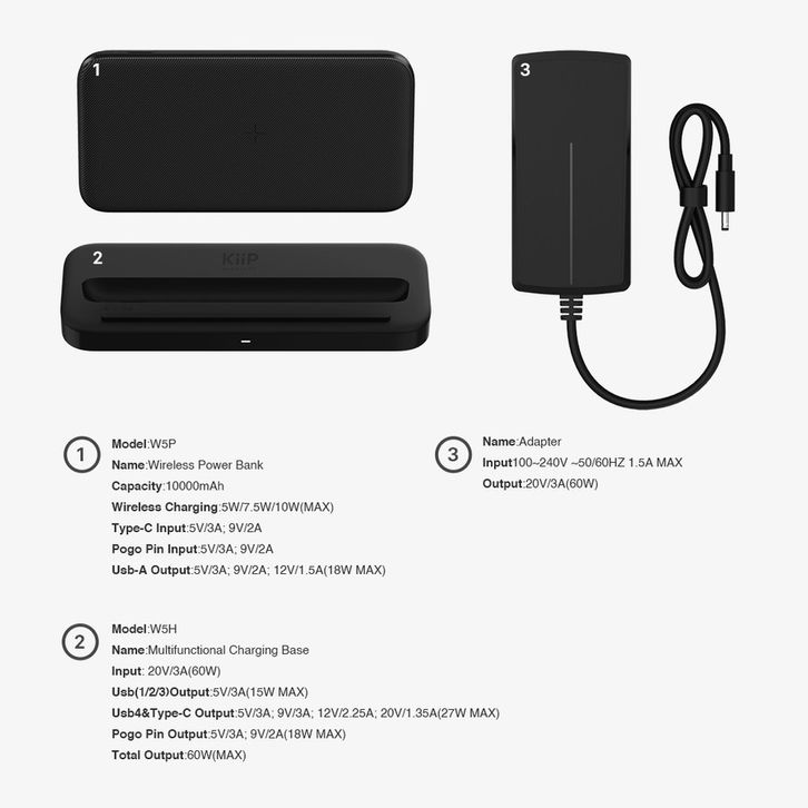 KIIP W5 CHARGER STATION WIRELESS FAST CHARGING POWER BANK USB TYPEC PD