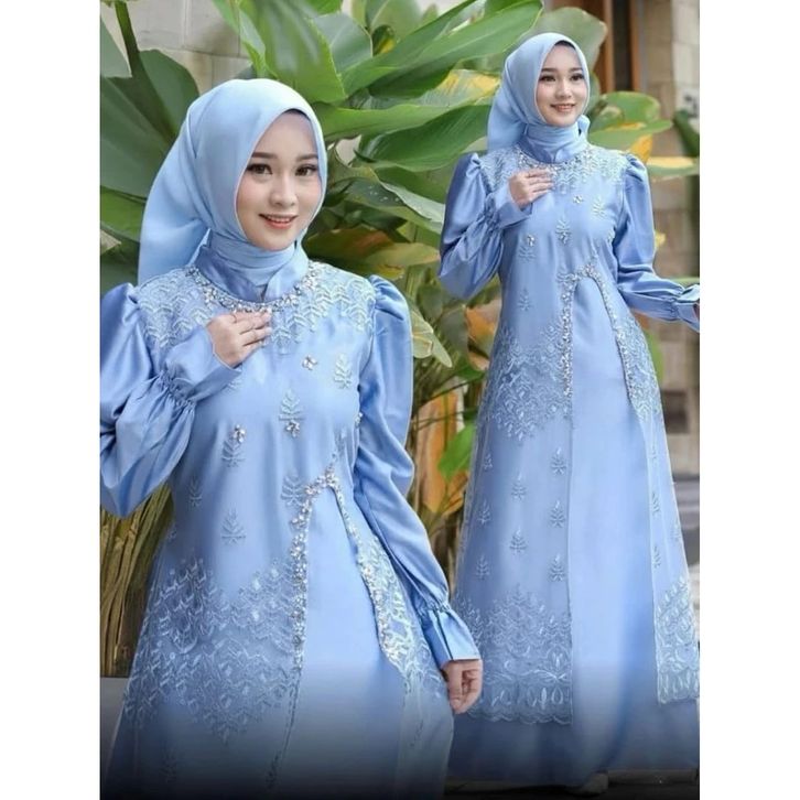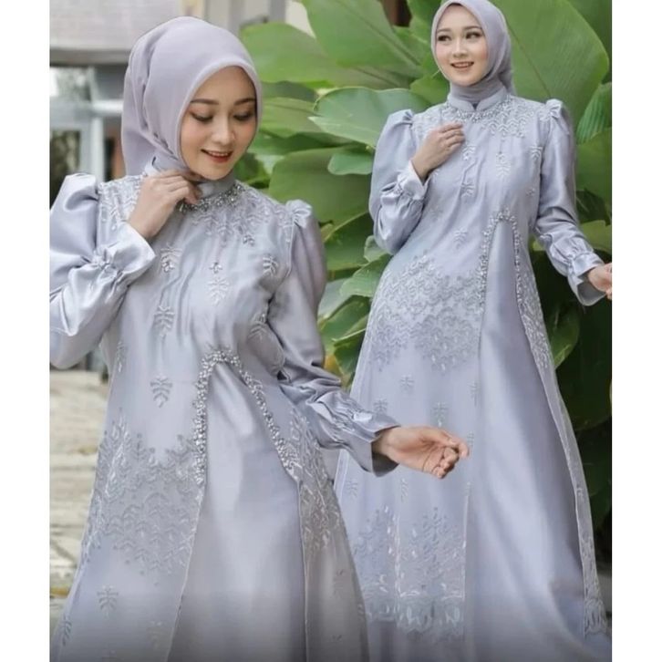 Marsya Dress Silk Brukat Payet Mutiara Premium Gamis Pesta Terbaru Dress Lebaran 2026 Gamis Kondangan Mewah