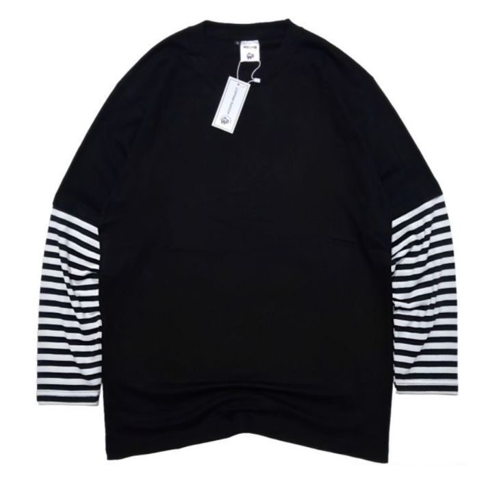 Atasan Pria/Woopie Longsleeve Double Layer Stripe / Kaos Lengan Panjang