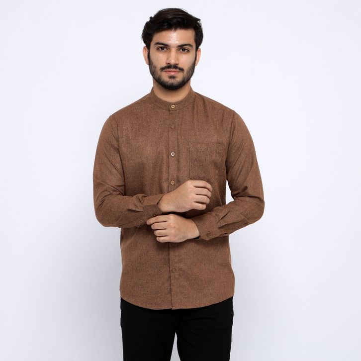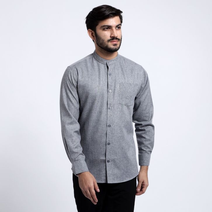 Simple Perfect Kemeja Pria Lengan Panjang Kerah Shanghai Polos | Kemeja Koko Two Tone
