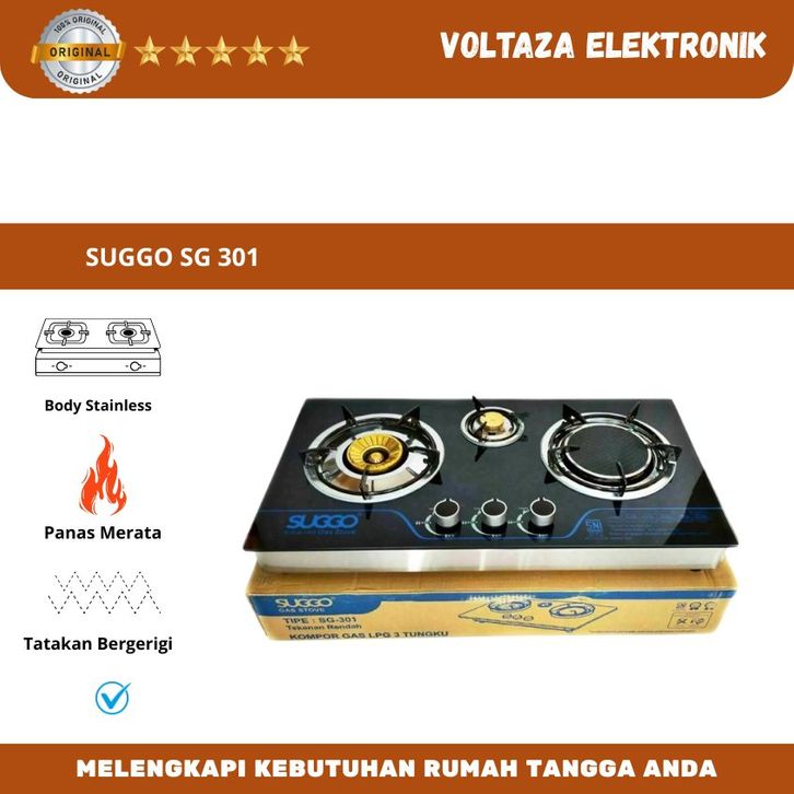 [Star]Kompor Tanam 3 Tungku Gas Kaca Suggo Sg-301 Tempred Glass Baja Stainless Steel Anti Karat Official