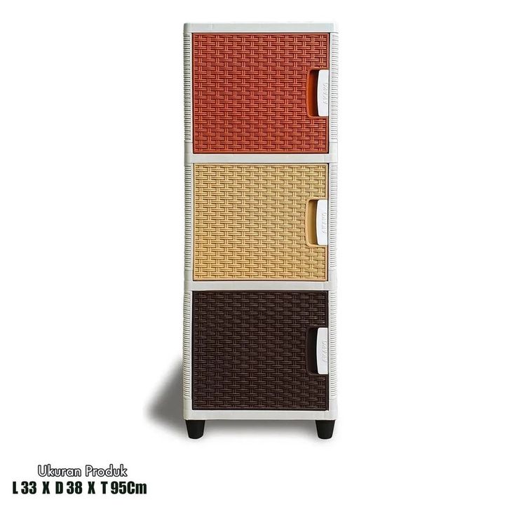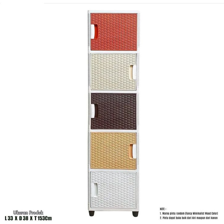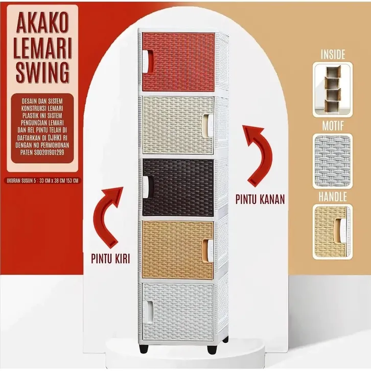 AKAKO - Lemari Pakaian Serbaguna Swing Full Rak Motif Rotan Susun 2, 3, 4 dan 5