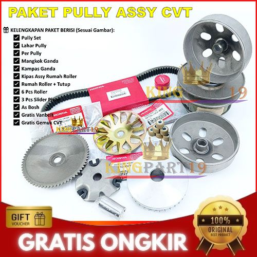 [Mall] PAKET LENGKAP CVT PULLEY PULLY ASSY SET RUMAH ROLLER VANBELT BEAT SCOOPY SPACY KARBURATOR LAMA KVY