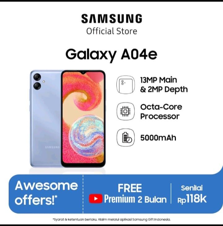 Samsung Galaxy A04e (3GB + 3GB ) (3GB + 64GB) Garansi resmi Samsung