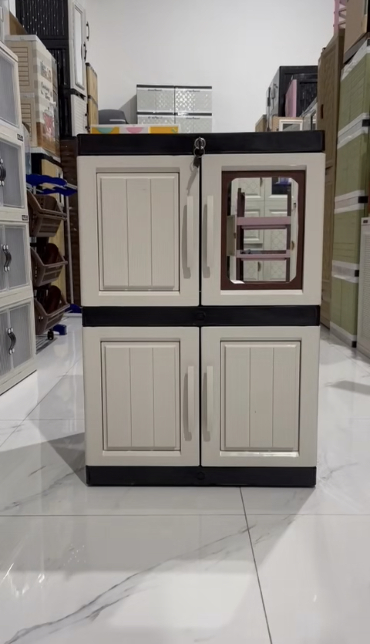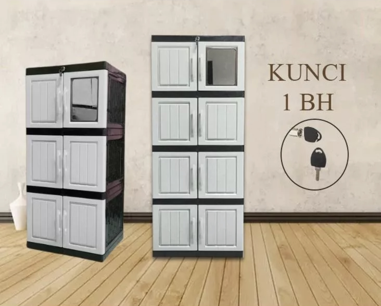 Termurah/Terlaris Lemari Plastik Susun 3 Susun 4 susun 2 Mini Kaca Kunci Wood Galaxy