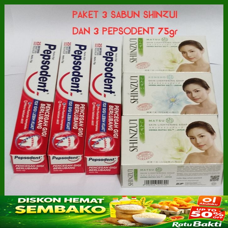 PAKET 3 PCS SABUN SHINZUI DAN 3 PCS ODOL PEPSODENT 75gr