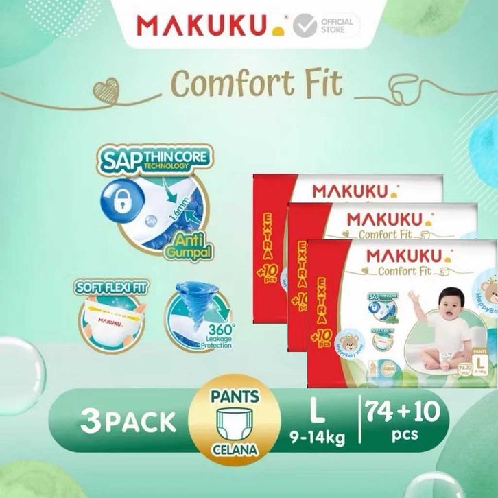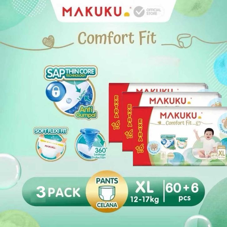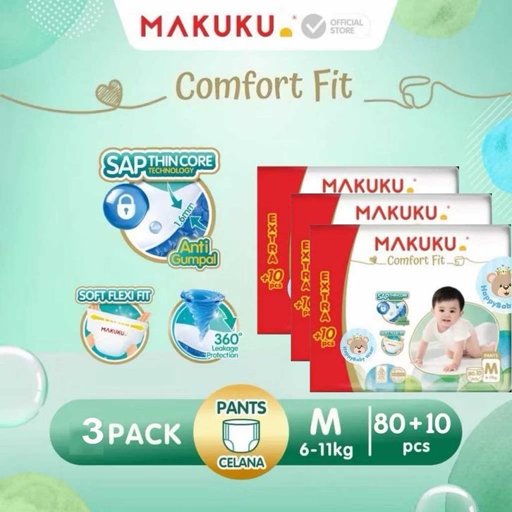 Paket 3 Ball Makuku SAP Diapers Comfort Fit 3.0 Celana / Pants Popok Bayi M80+10 / L40+4 / XL38+4 isi 3 pcs