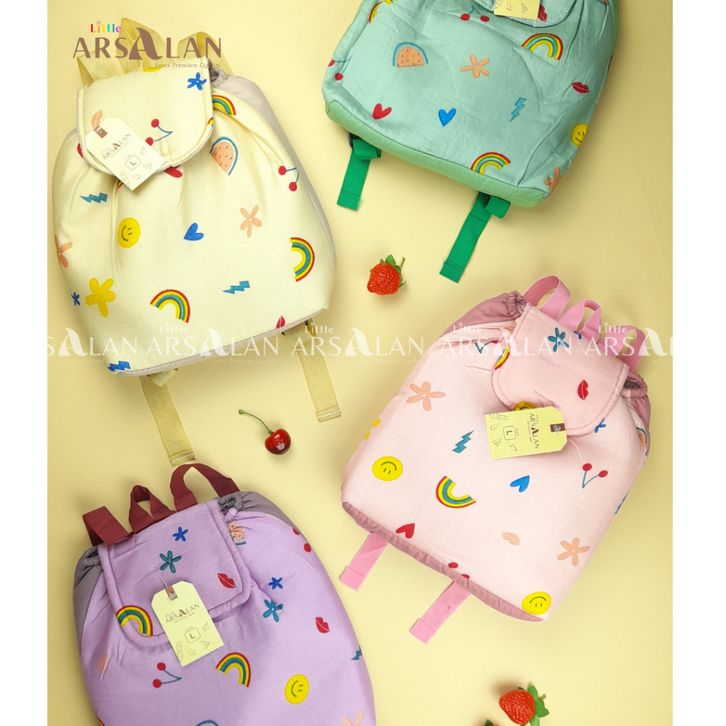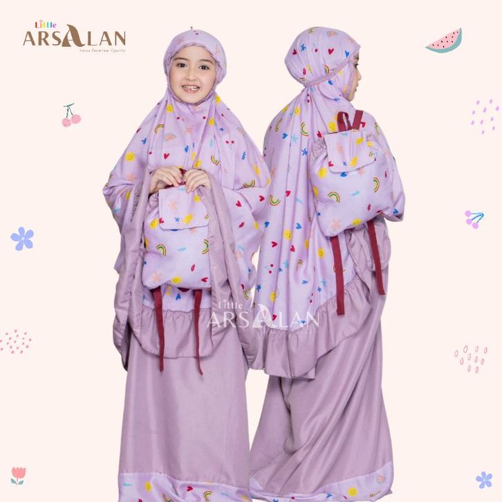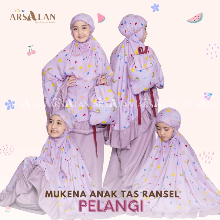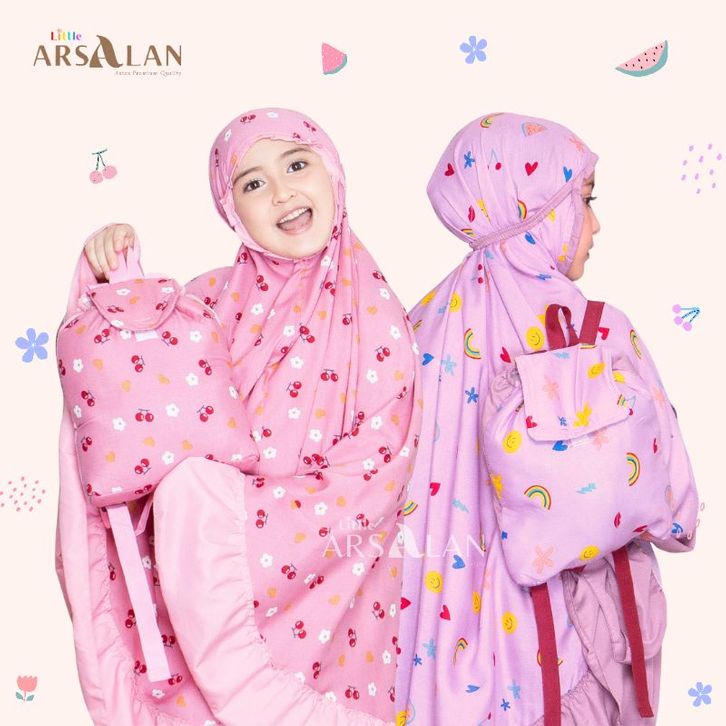 Mukena Anak Tas Ransel motif Cherry motif Pelangi | Mukena Katun Rayon TK SD Tanggung | Mukena Arsalan