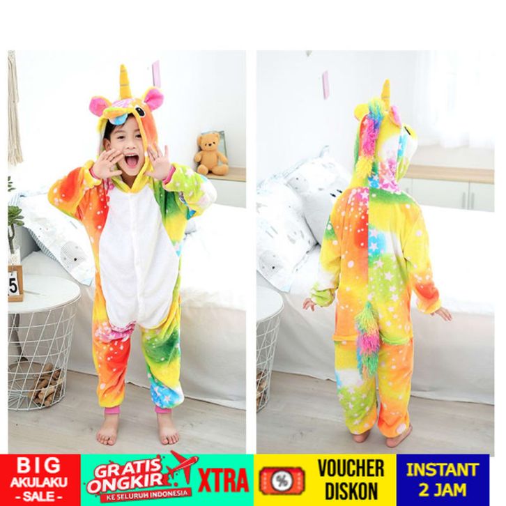 KIGURUMI UNICORN PIYAMA BAJU TIDUR COSTUM COSPLAY HEWAN KOSTUM KARAKTER ANAK BAHAN PREMIUM