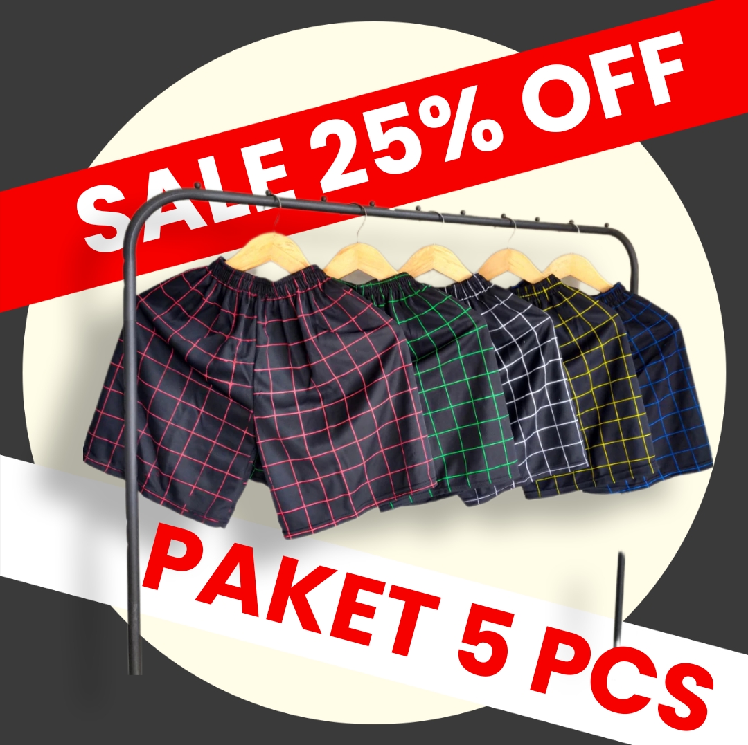 Paket isi 5 Pcs Celana pendek santai kolor tartan dewasa Boxer pria motif kotak kotak celana anak dewasa full size