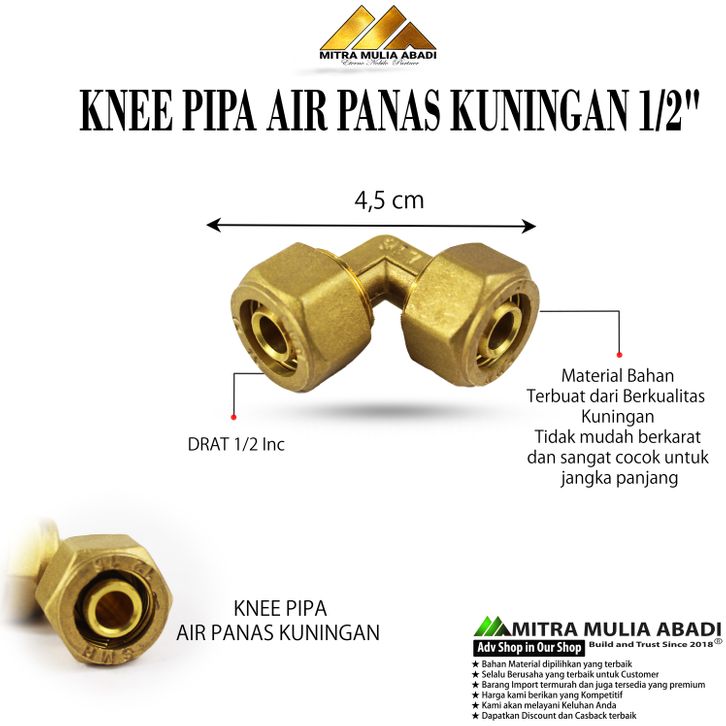 KNEE PIPA AIR PANAS KUNINGAN NON DRAT 1/2"