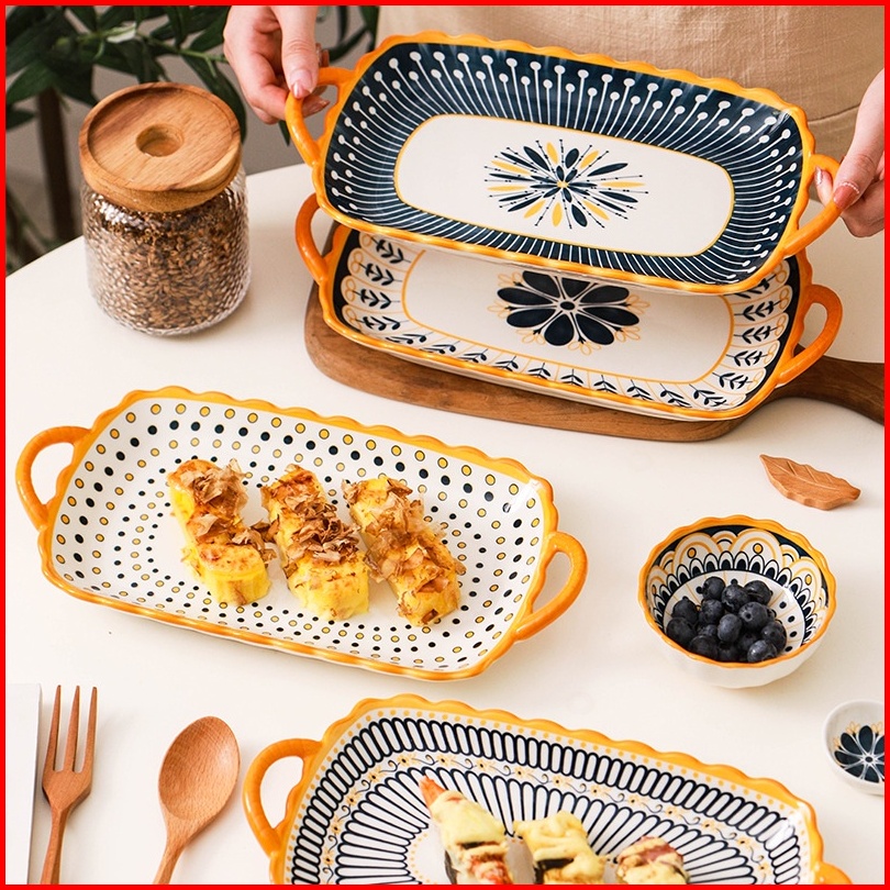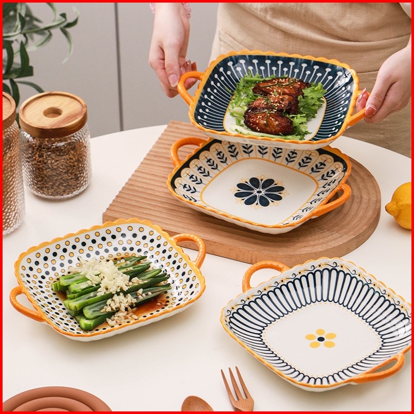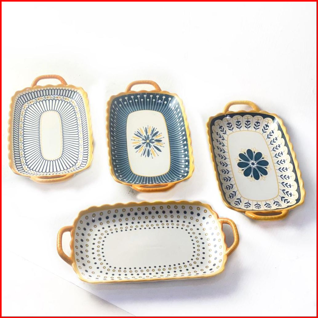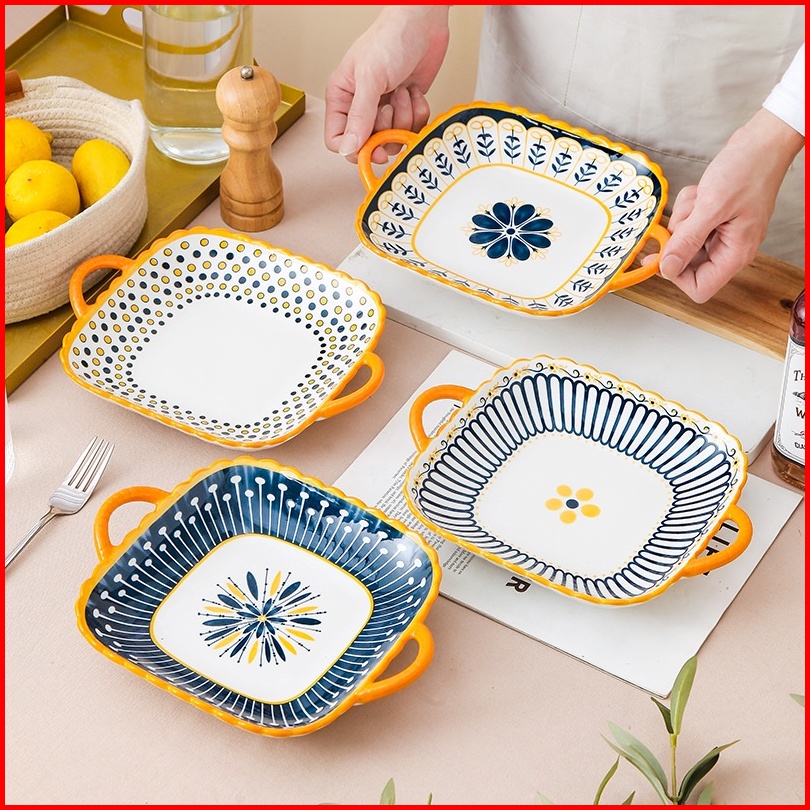 Ashome Piring Gagang Series Blue Flower Keramik Tahan Panas Dan Microwave Safe Piring Makan Dan Saji Keramik Series Blue