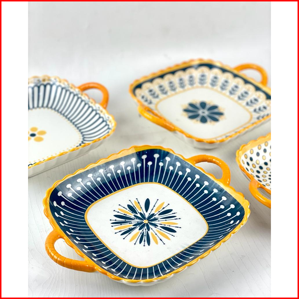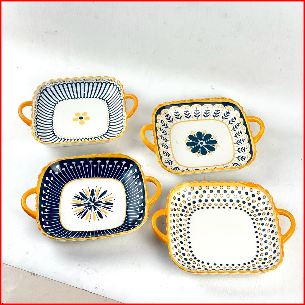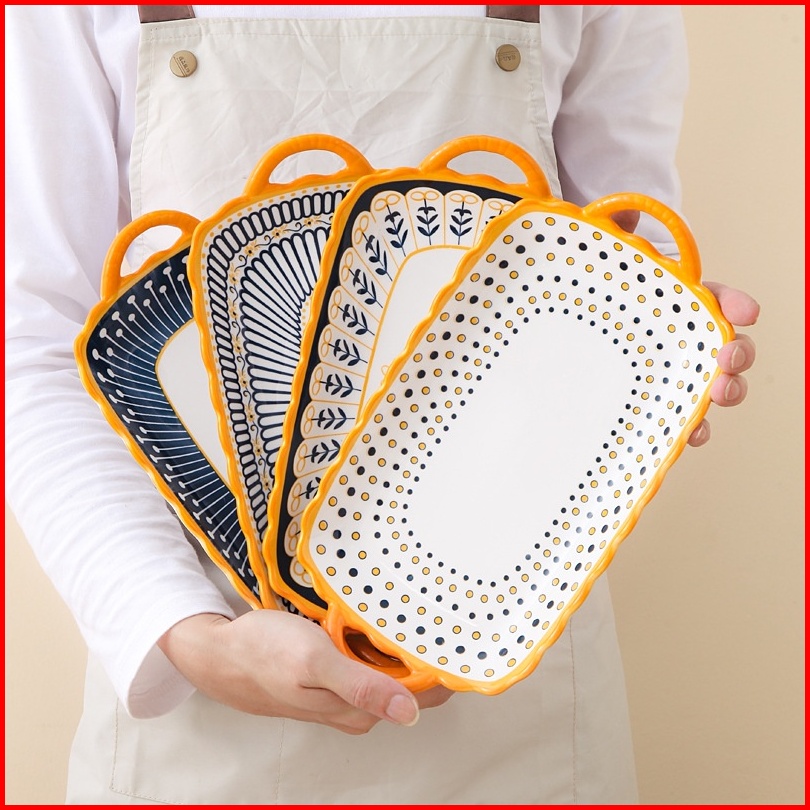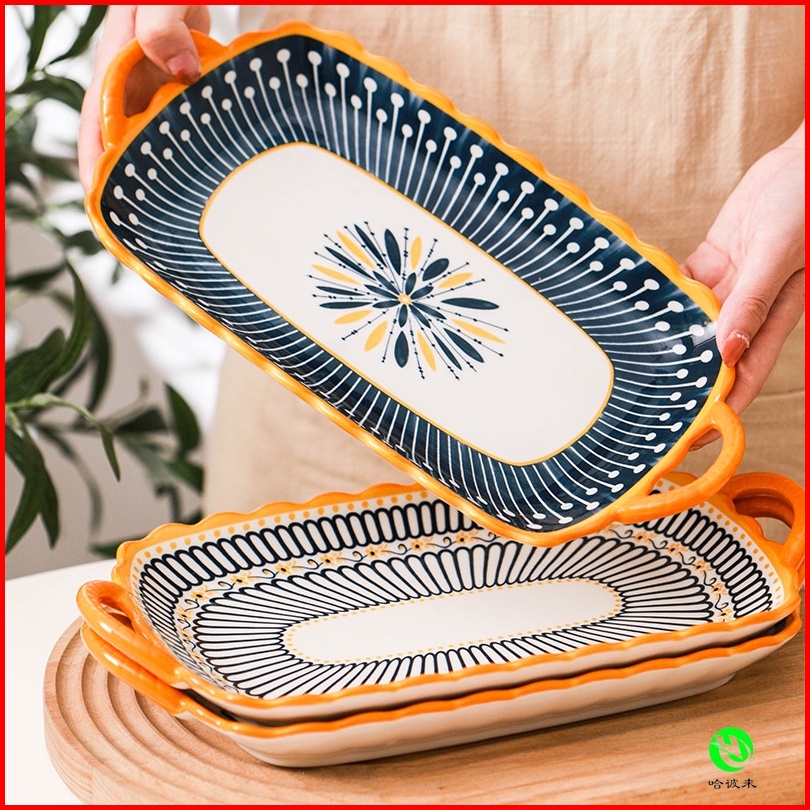 Ashome Piring Gagang Series Blue Flower Keramik Tahan Panas Dan Microwave Safe Piring Makan Dan Saji Keramik Series Blue