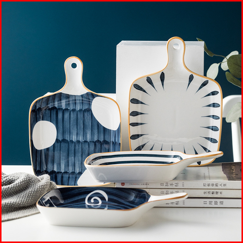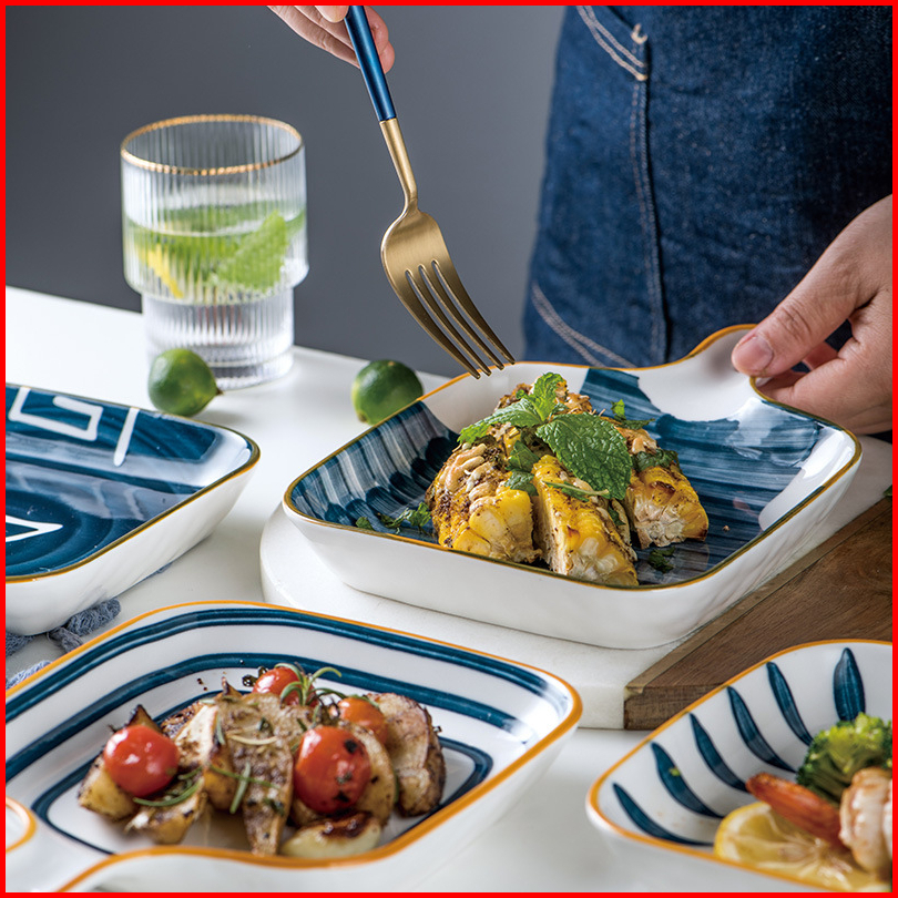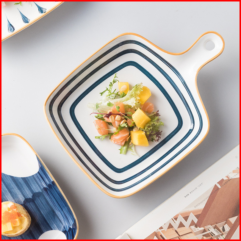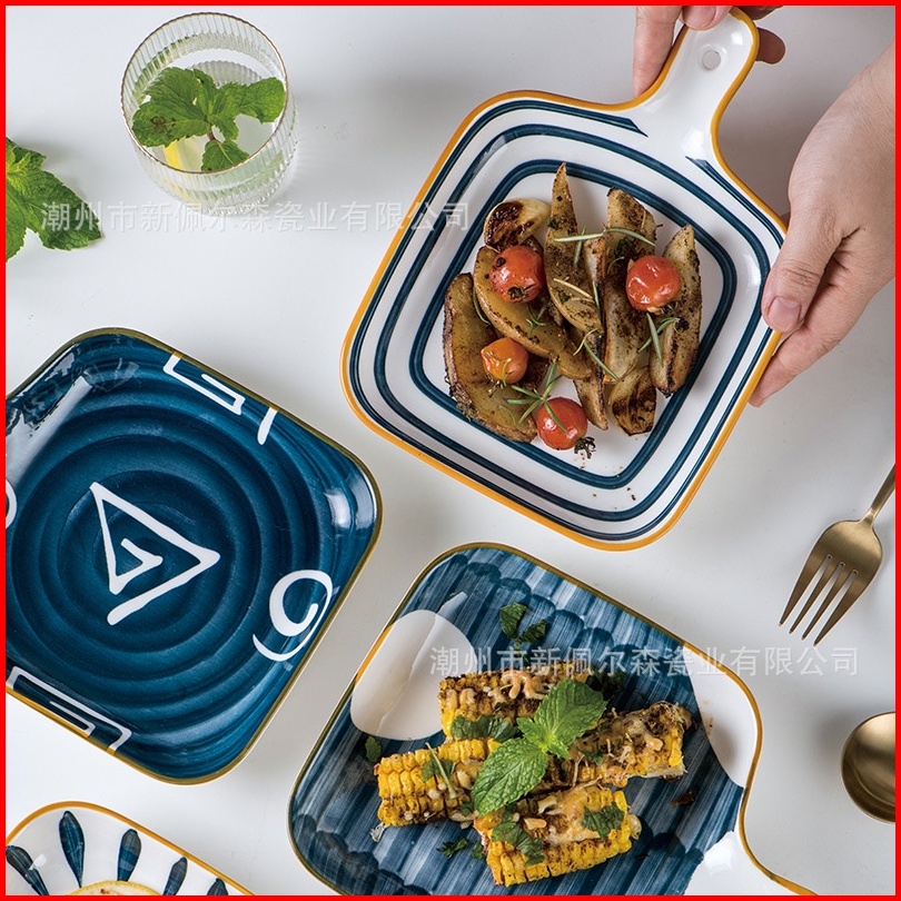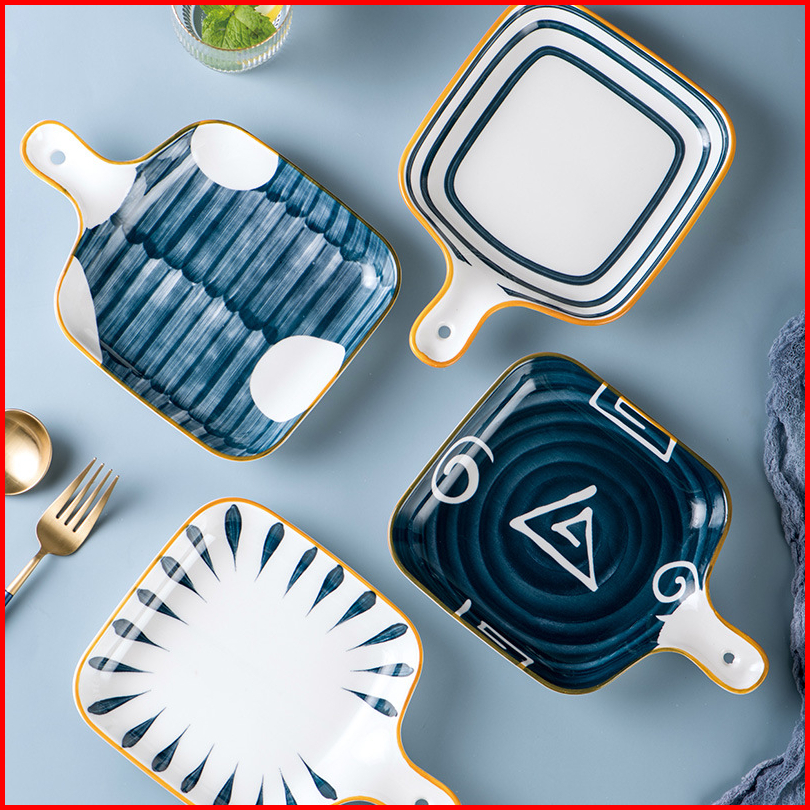 Ashome Piring Keramik Gagang Motif Jepang Tahan Panas Mircrowave Safe Piring Saji Keramik Gagang Square Piring Keramik S