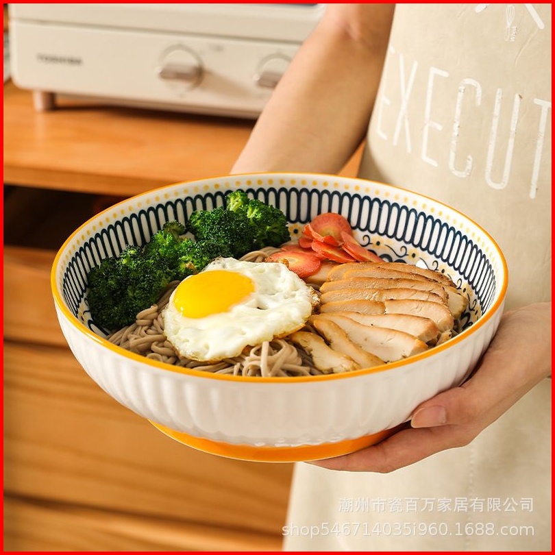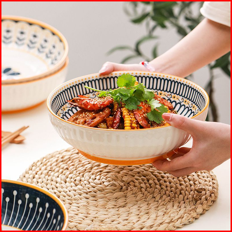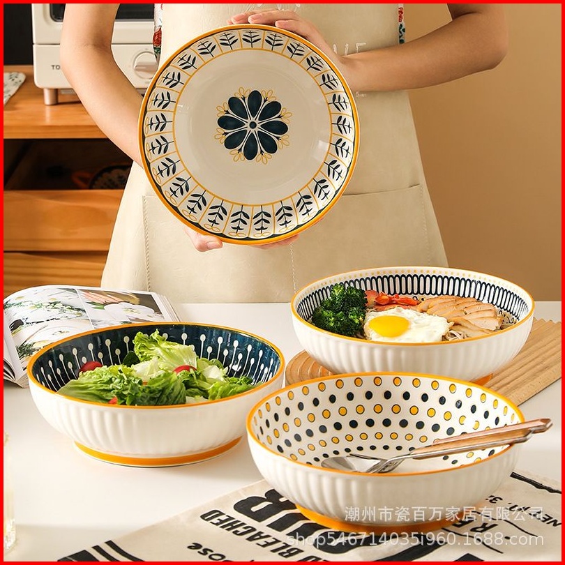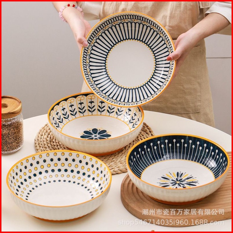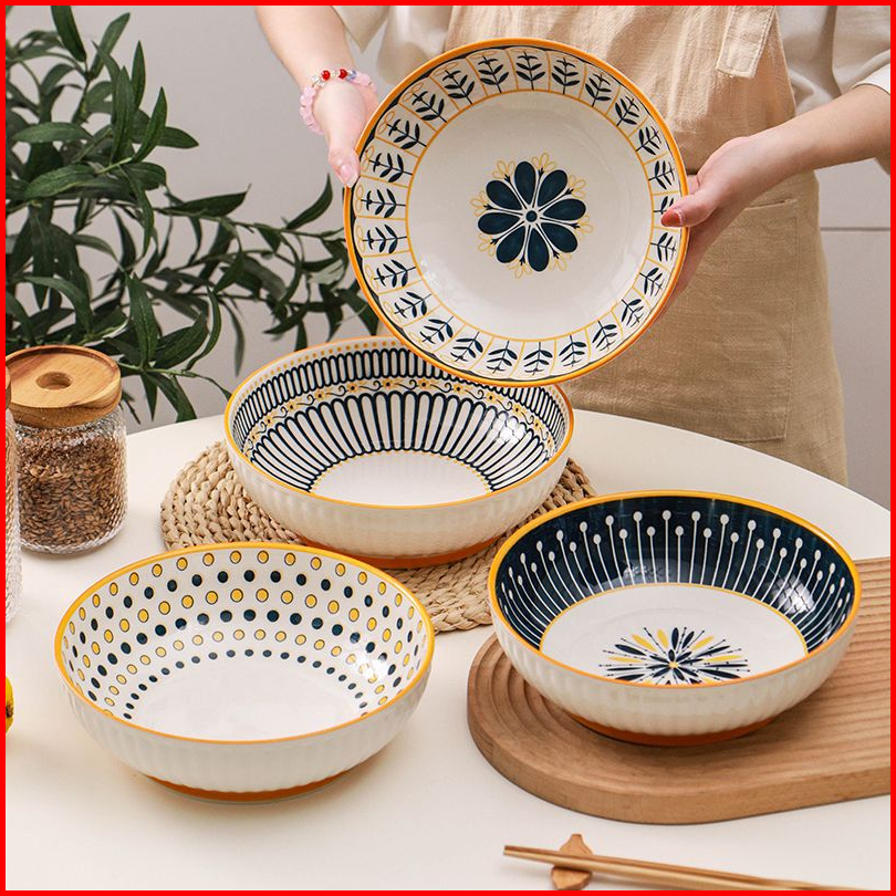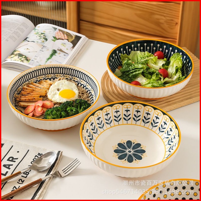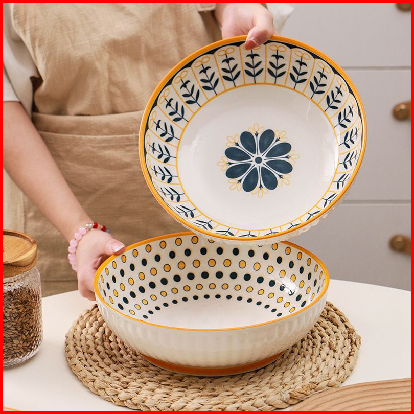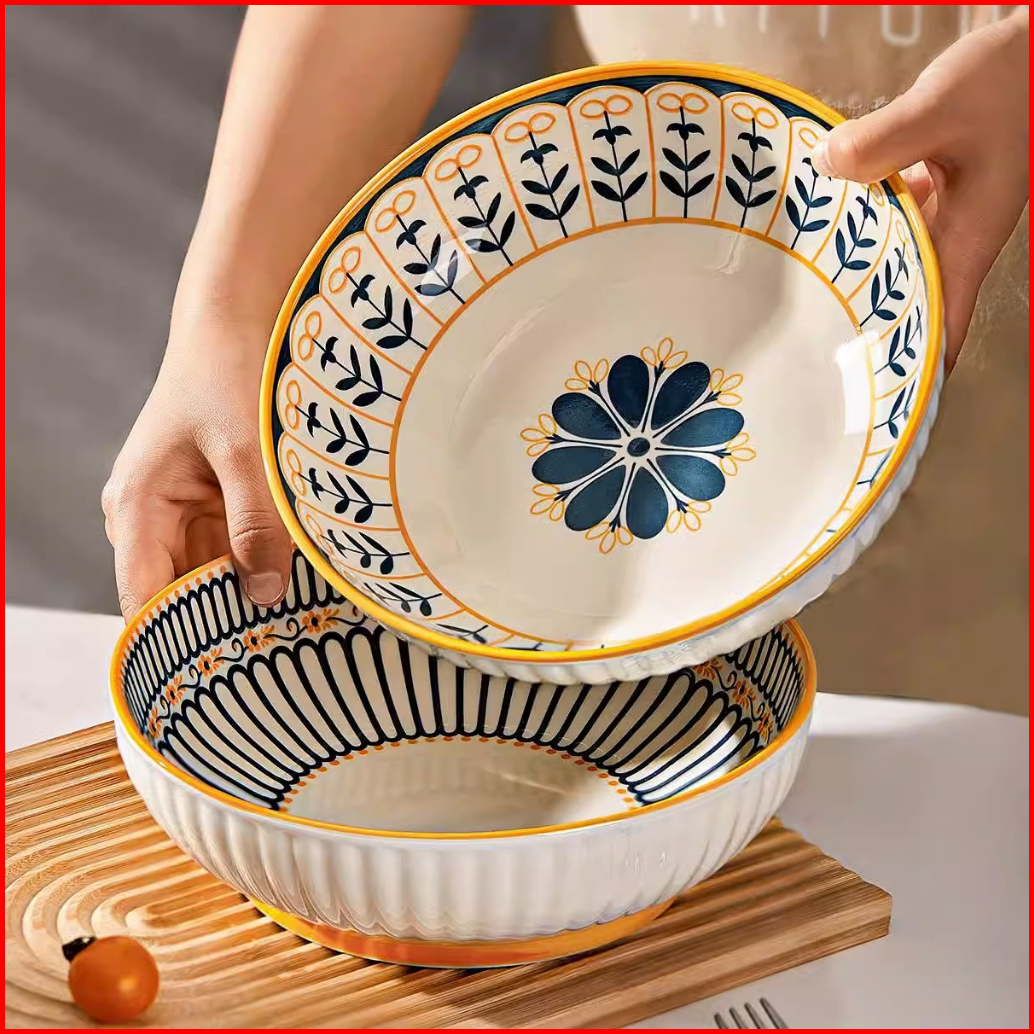 Ashome Piring Makan Salad Besar Keramik Blue Flower Series Elegan Tahan Panas Microwave Set Piring Set Blue Flower Pirin