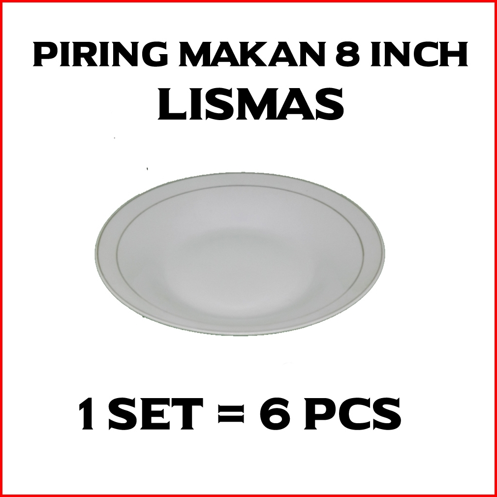 Piring Makan 8 Inch Lismas 6 Pcs - Piring Keramik