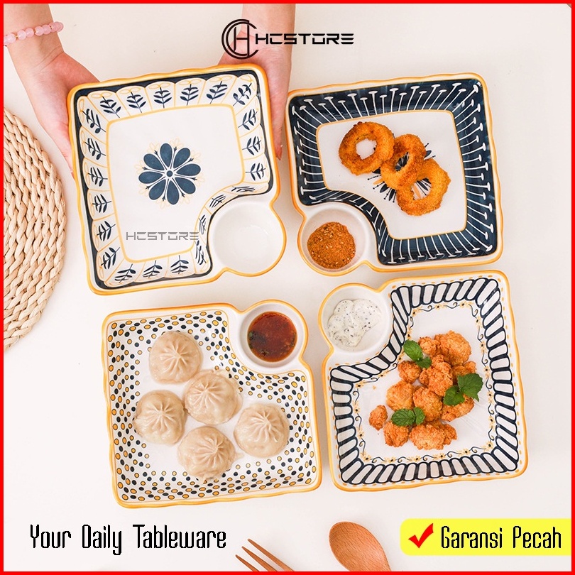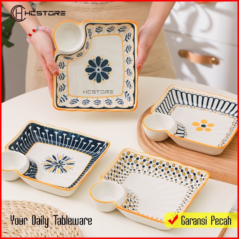 Piring Dumpling Petak Keramik Model Eropa Ukuran 22cm Bisa Digunakan Dioven Dan Microwave