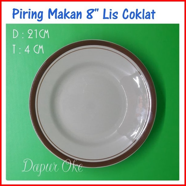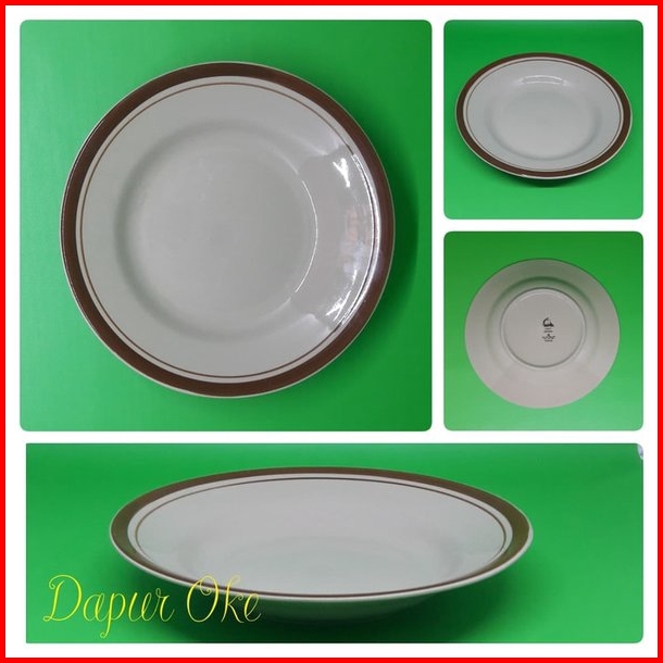 Piring Makan 8 Inch Lis Coklat Lucky 6 Pcs - Piring Keramik