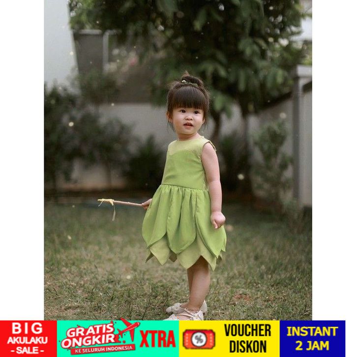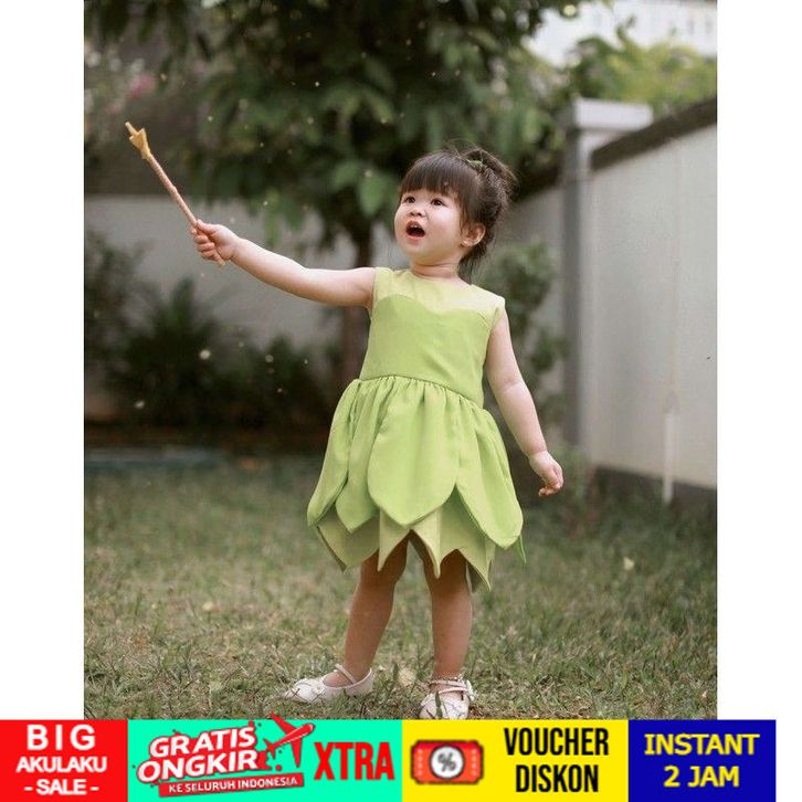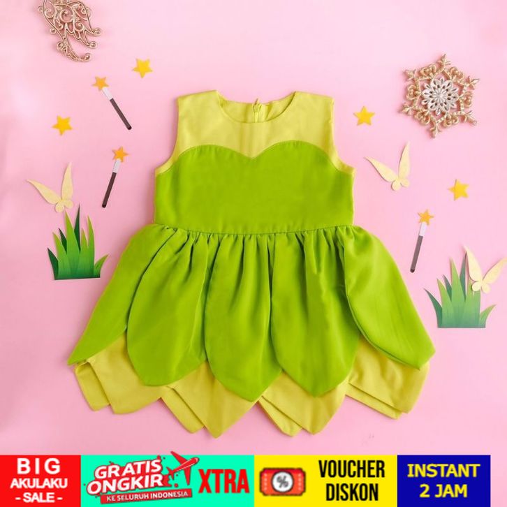 kostum anak tinkerbell FREE sayap peri,bando dan tongkat peri BAHAN PREMIUM