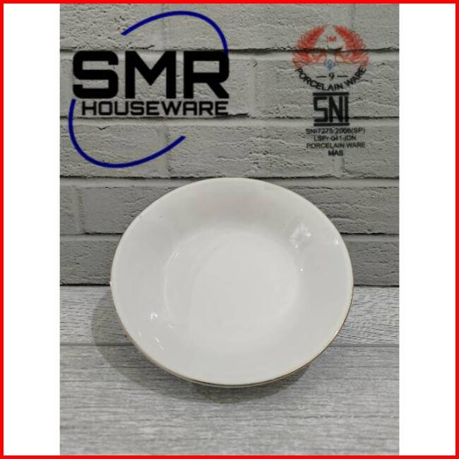6 Pcs Piring Pudding Keramik Lis Merk Jm Ukuran 14 Cm 6 Pcs