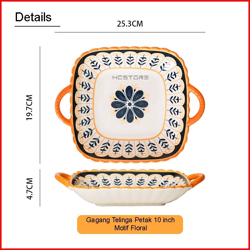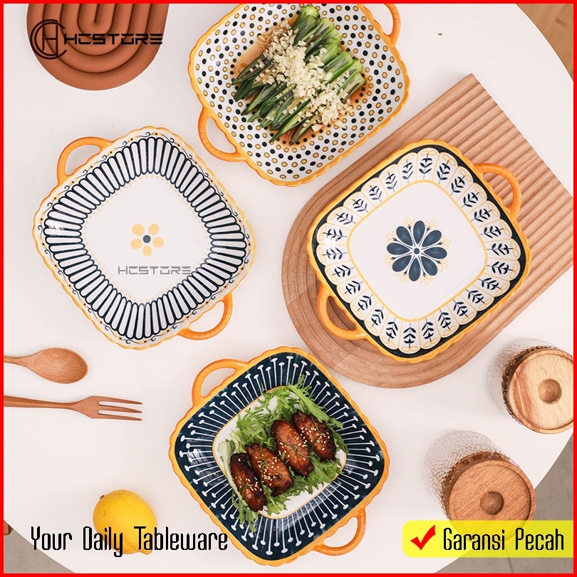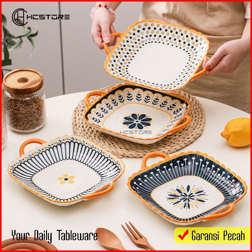 Piring Makan Keramik Piring Saji Petak Gagang Model Eropa Tahan Panas Microwave Safe