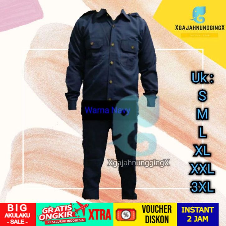 Setelan Seragam Safari Security Satpam Sopir Pribadi Ajudan Berkualitas Bahan High Twist Kancing Garuda G0old Hitam
