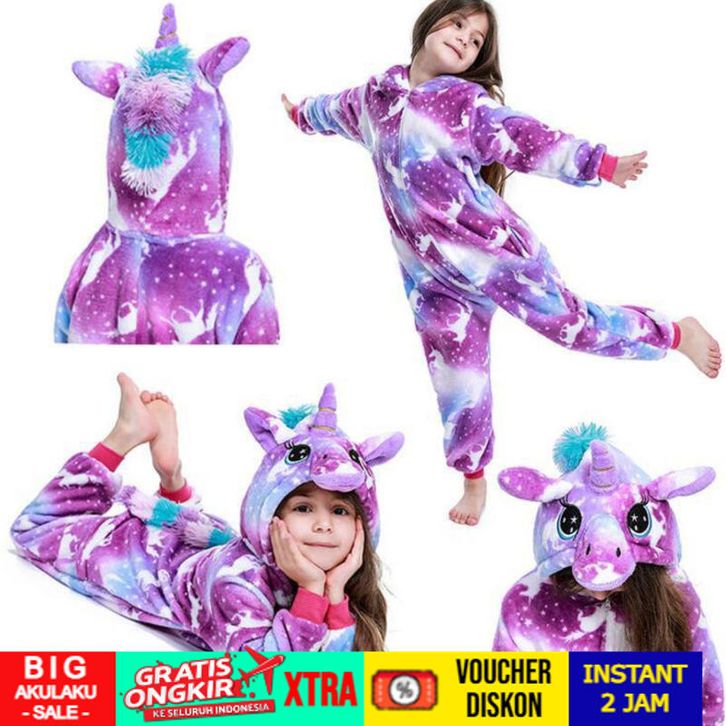 BAJU ONESIE BONEKA UNICORN FLYING HORSE PIYAMA KOSTUM ANAK BAHAN PREMIUM
