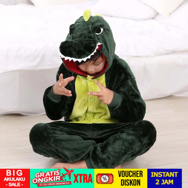 BAJU ONESIE KOSTUM DINO DINOSAURUS HIJAU ANAK COSPLAY PIYAMA BAHAN PREMIUM