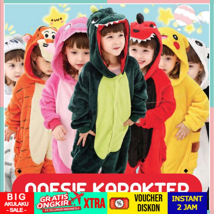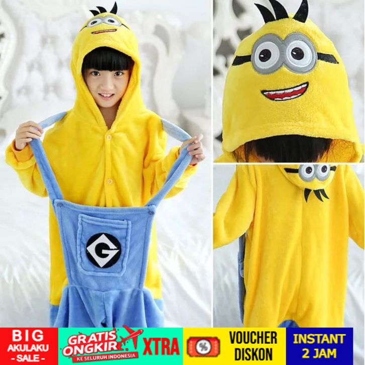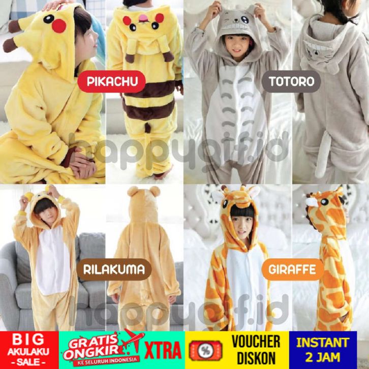 KOSTUM PIYAMA ONESIE KARAKTER ANAK KID PIKACHU MINION TOTORO DLL BAHAN PREMIUM