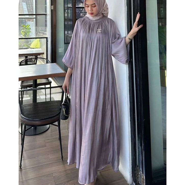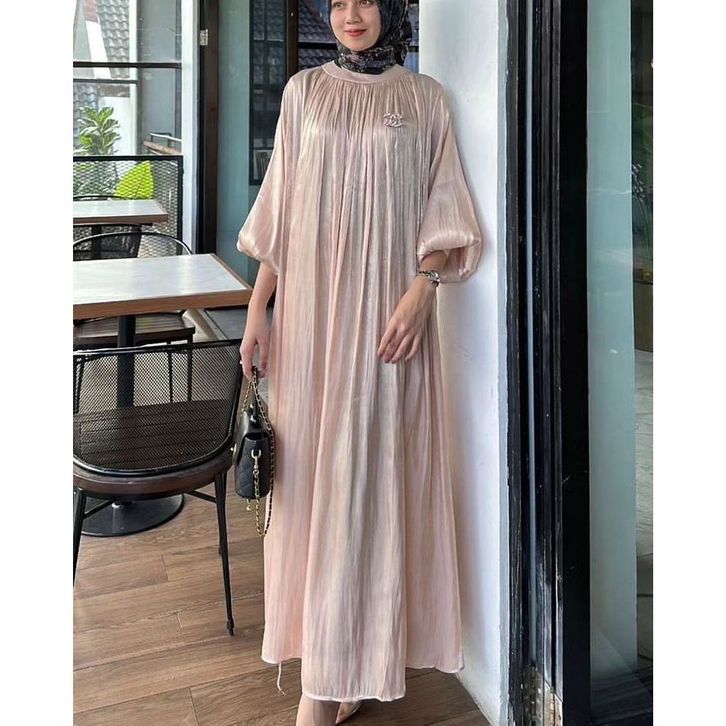 Amenna Dress / Dress Untuk Kondangan / Dress Santorini Shimmer / Dress Polos Lengan Balon Warna
