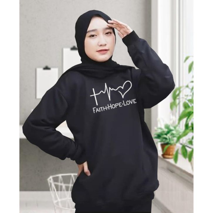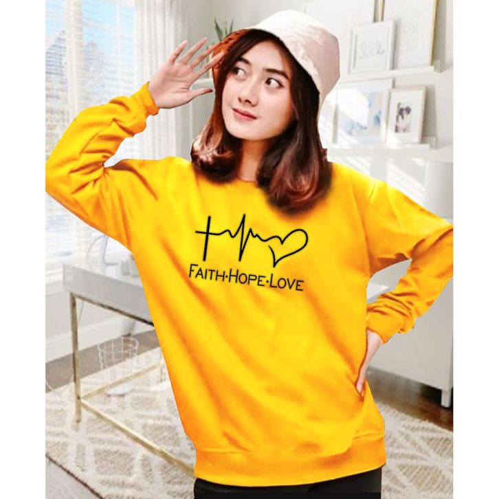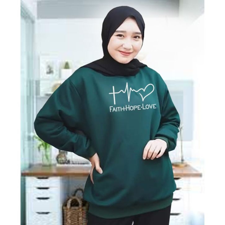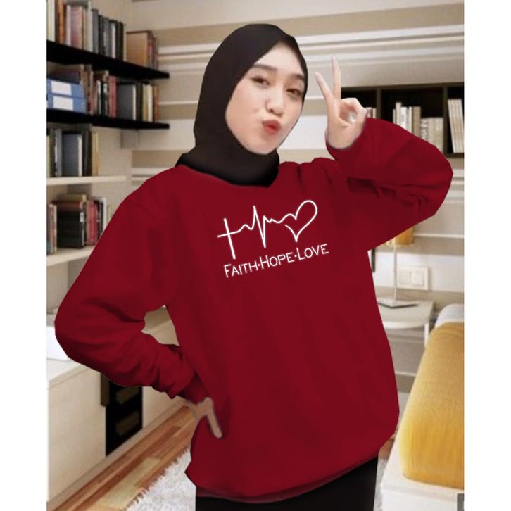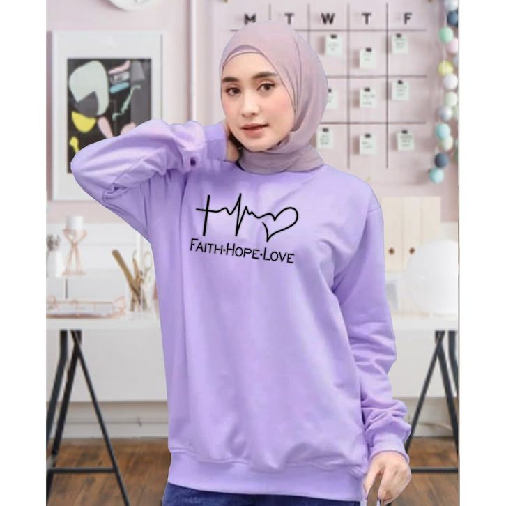 Kaos Lengan Panjang faith.hope.love / Kaos Sweatshirt / Atasan Wanita