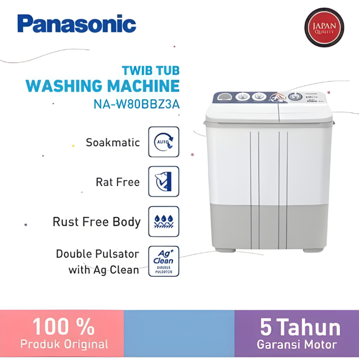 MESIN CUCI PANASONIC 2 TABUNG KAPASITAS 15 12 9 8 7 KG NA-W80BBZ3A NA-W90BBZ3A MURAH ORIGINAL BEST SELLER