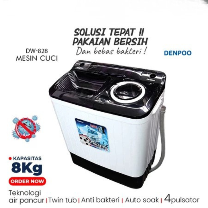 DENPOO MESIN CUCI 2 TABUNG 8KG 9KG 11KG TWIN TUBE FRONT TOP LOADING DW828 DW8907B MINI PORTABLE MURAH GRATIS ONGKIR