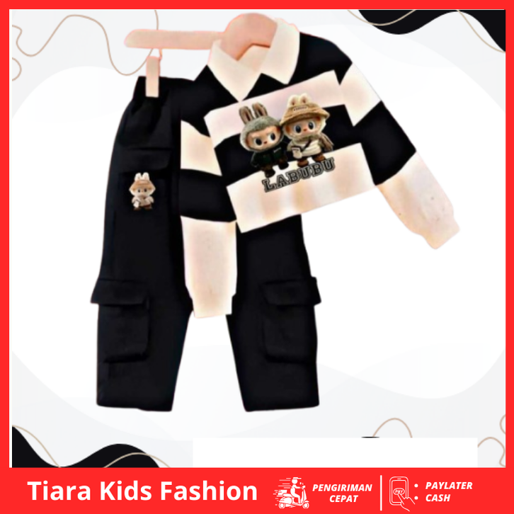 Setelan Anak Perempuan Kekinian Setelan Baju Anak Crop Karakter Labubu Celana Cargo Terbaru Usia 1-12 Tahun