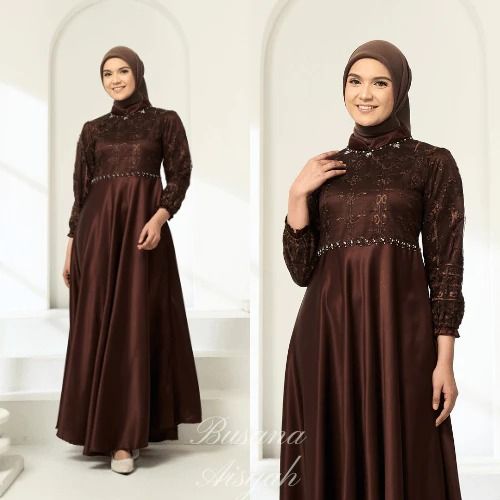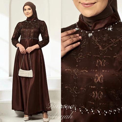 Dress Wanita Kekinian Brina Dress Lebaran 2026 Gamis Model Terbaru Dress Satin Brukat Full Payet Mutiara Mewah Elegan Ga