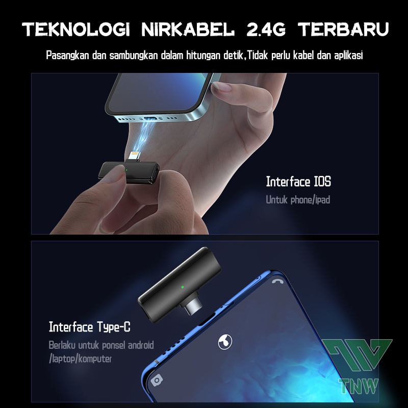 TNW A9Pro/A8Pro Microphone Wireless Mic Wireless clip on Microphone youtuber suara jernih Mic bluetooth Tanpa kapel mic