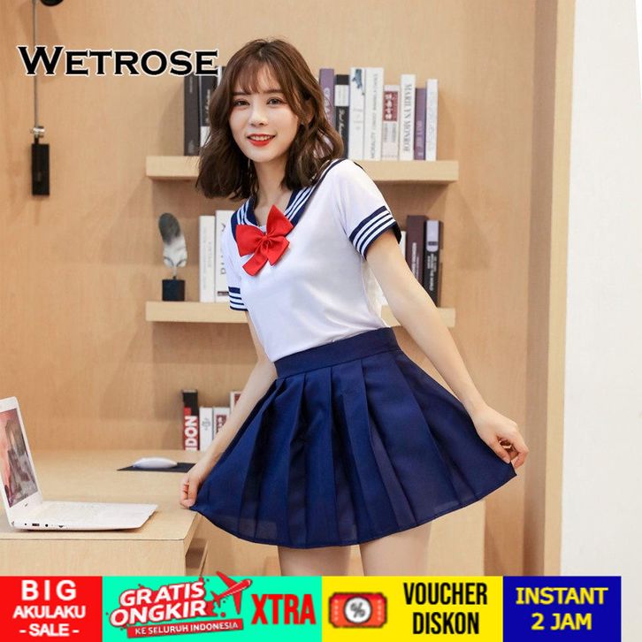 【Wetrose】New Jepang dan Korea Students School Uniform Suit Uniform JK Seragam Siswa Sailor Suit Seifuku Set BAHAN