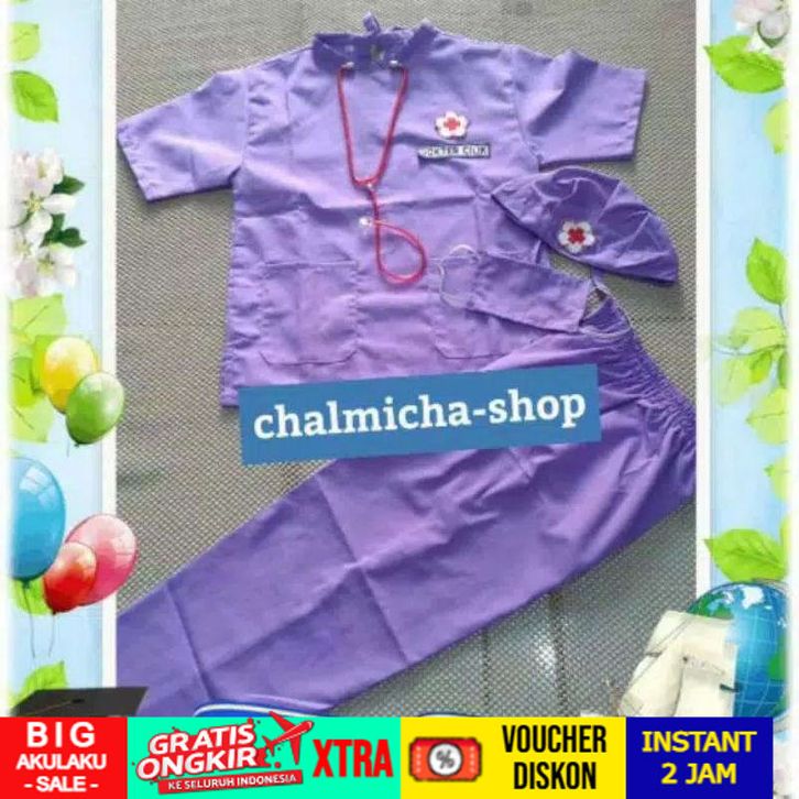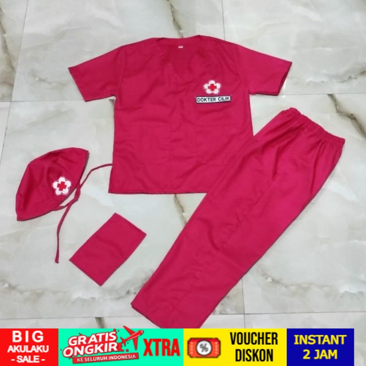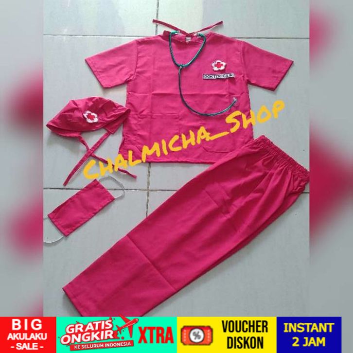 Baju Setelan Karnaval Kostum Profesi Dokter Bedah Pink Anak Operasi Bidan Jaga Malam BAHAN PREMIUM