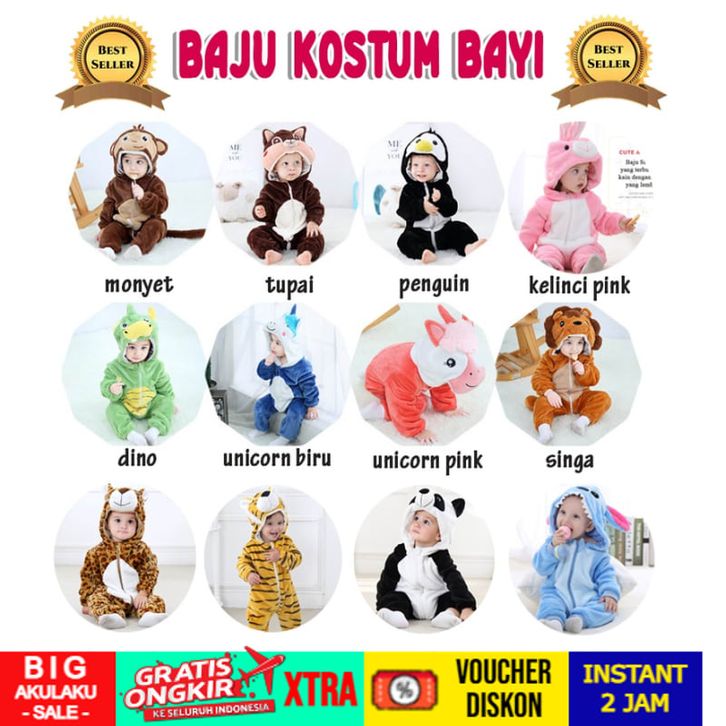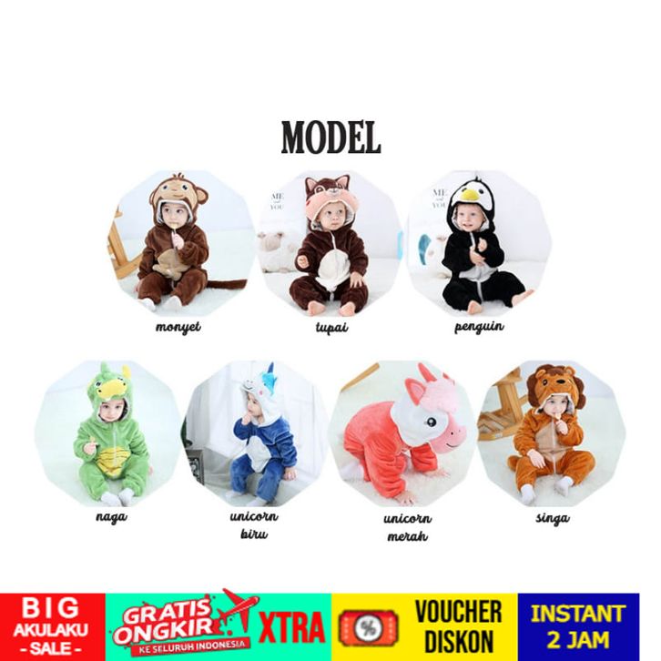 Baju Kostum Anak Bayi Costum Hewan Onesie Animals Jumper Anima Cewek Cowok BAHAN PREMIUM