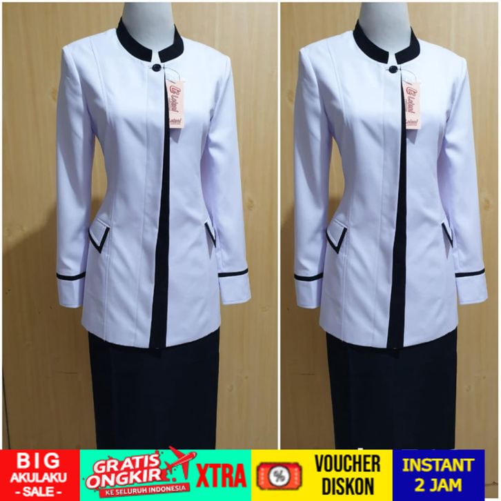 Seragam Dinas Putih Wanita Lis Hitam Setelan Rok A Blazer Kerja Wanita Putih Set Celana Jas Putih Wanita Baju Seragam