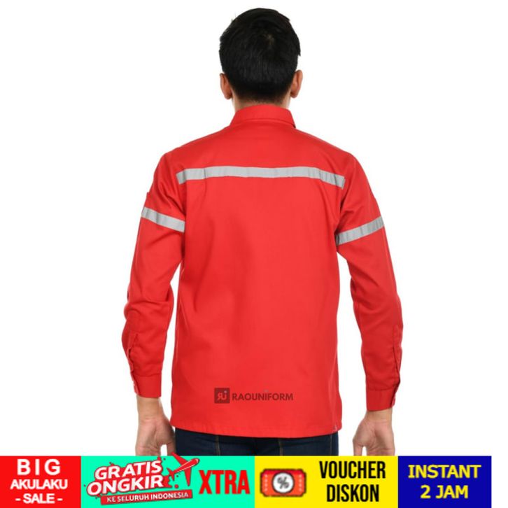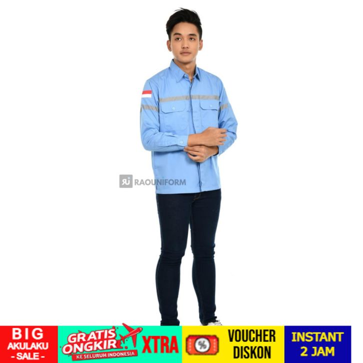 Atasan Wearpack Putih Tangan Panjang/Baju Safety/kemeja Proyek/Seragam Kantor/Lapangan BAHAN PREMIUM