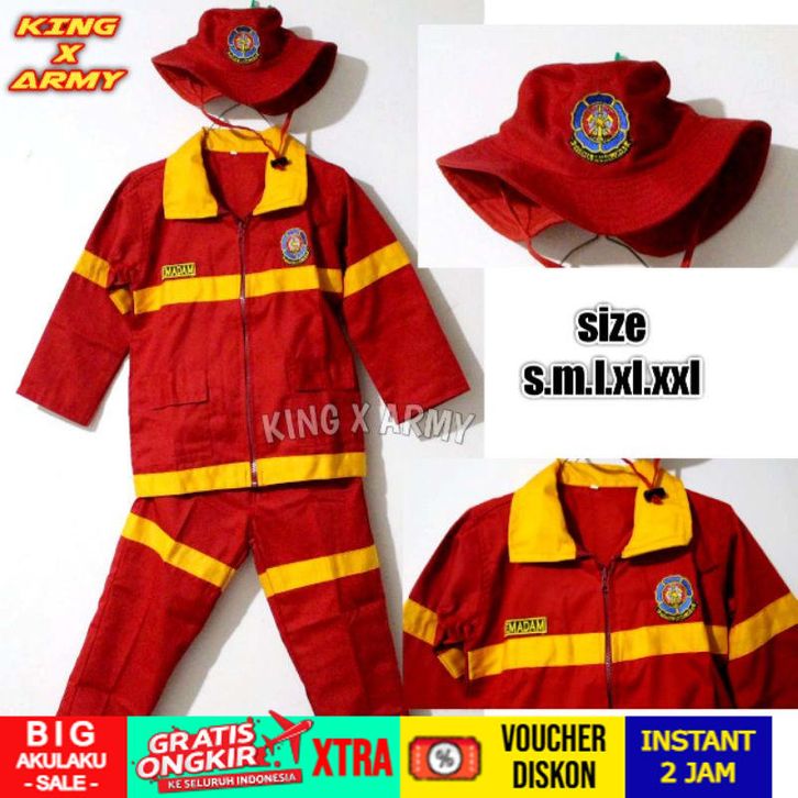 Ready Baju Profesi anak DAMKAR Merah / Pemadam Cilik BAHAN PREMIUM