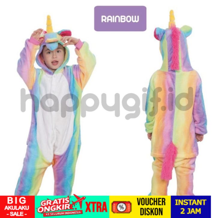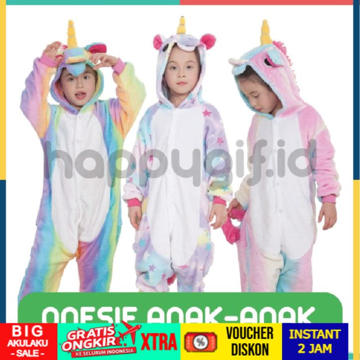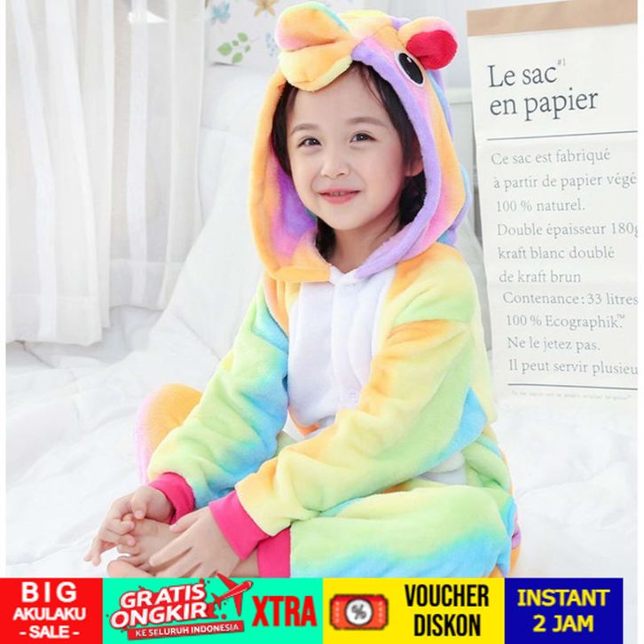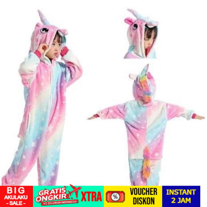 ONESIE UNICORN PIYAMA BAJU TIDUR COSTUM COSPLAY HEWAN KOSTUM KARAKTER ANAK KID BAHAN PREMIUM