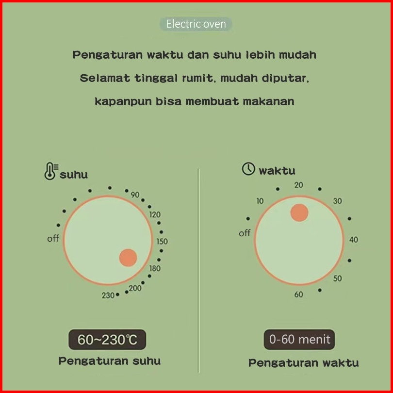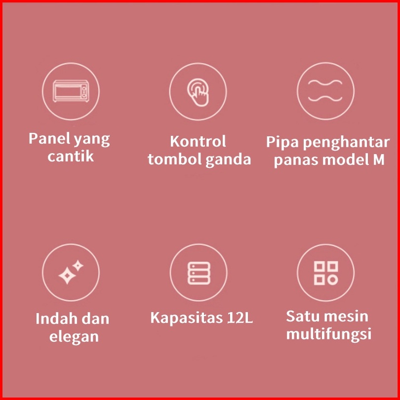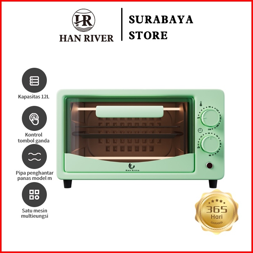Han River Oven Listrik 12l Operasi Rotasi Electric Oven Kue Multi-fungsi Kontrol Suhu Waktu Roti