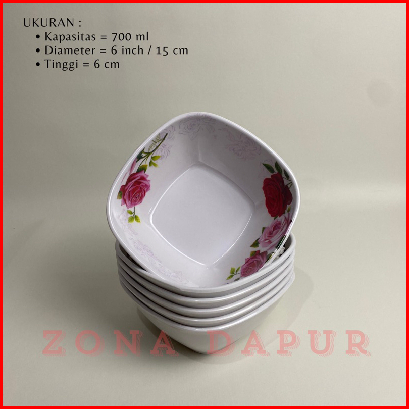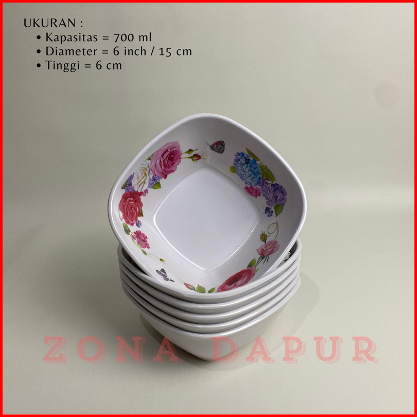 6 Pcs 1 Lusin - Mangkuk Melamine Motif Kembang 15 5 Cm Mangkok Melamin Persegi Alat Saji Peralatan Makan Serbaguna