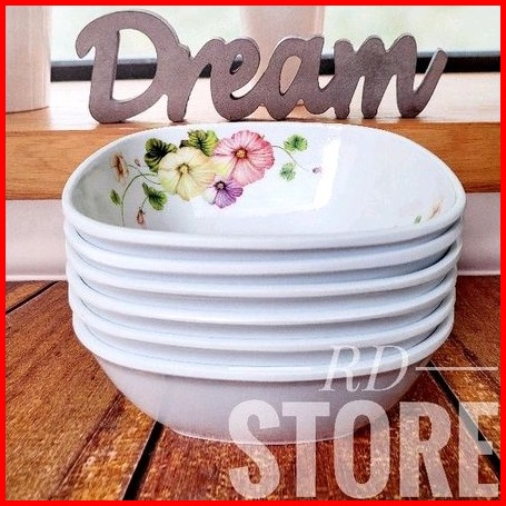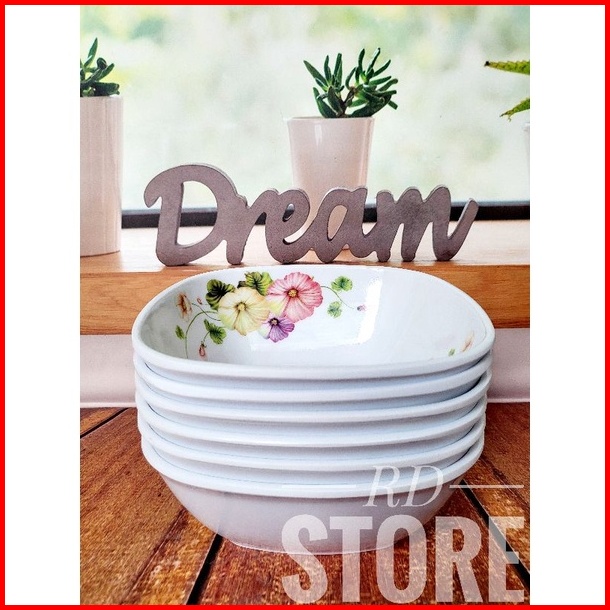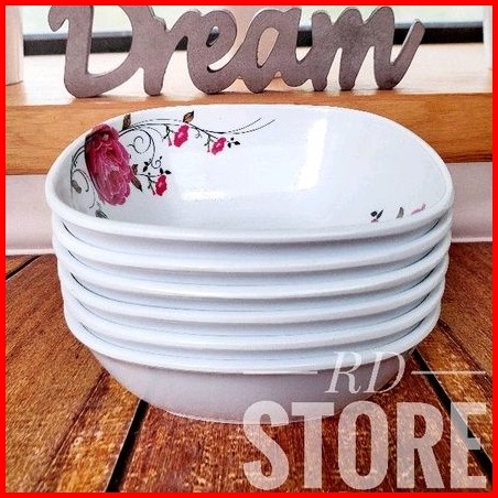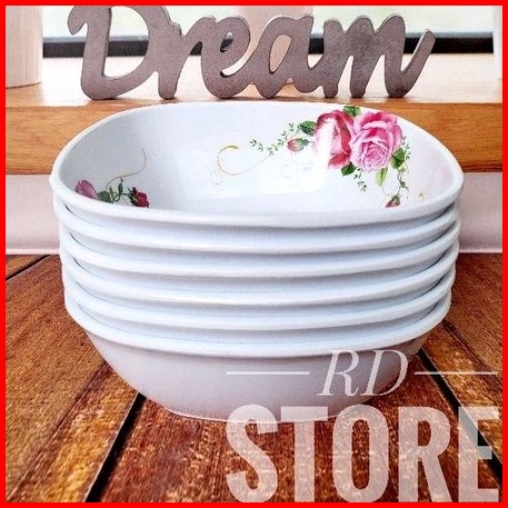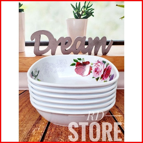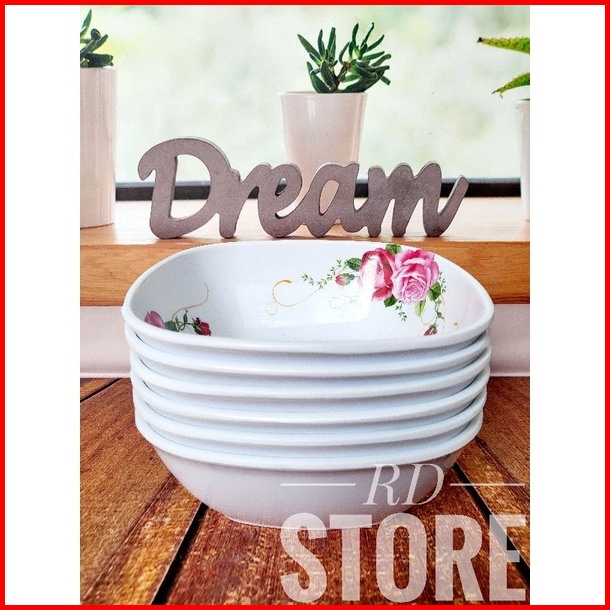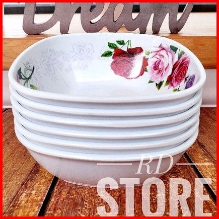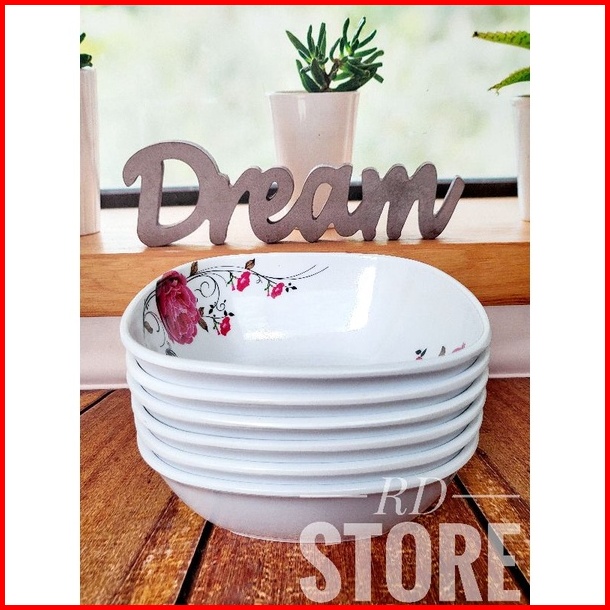 Promo 6.pcs Mangkok Kotak Motif Rose Bahan Melamine Ware Tebal Dan Kuat Anti Panas