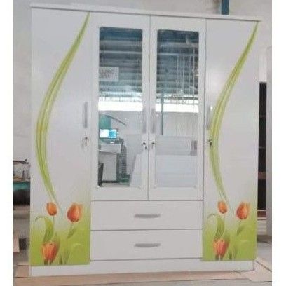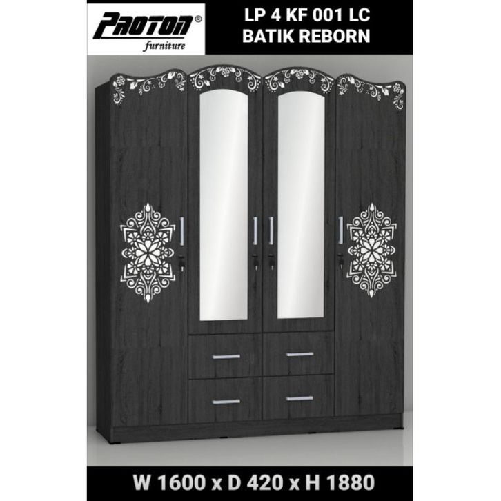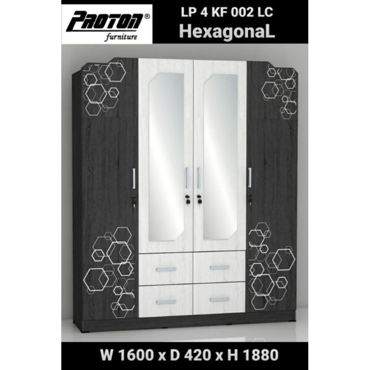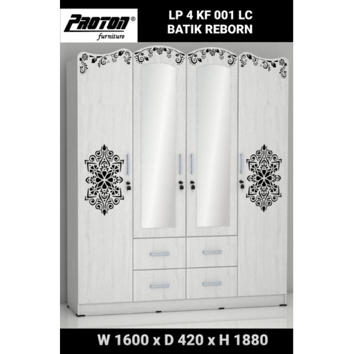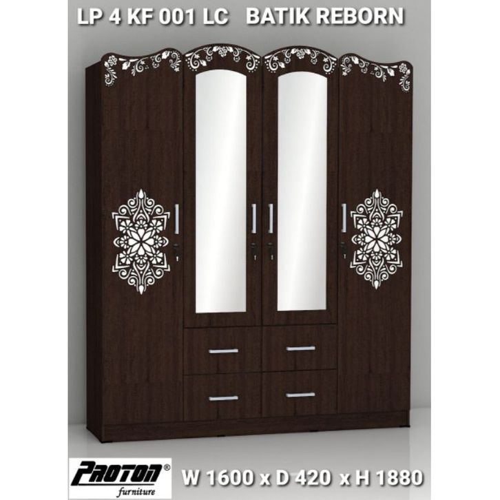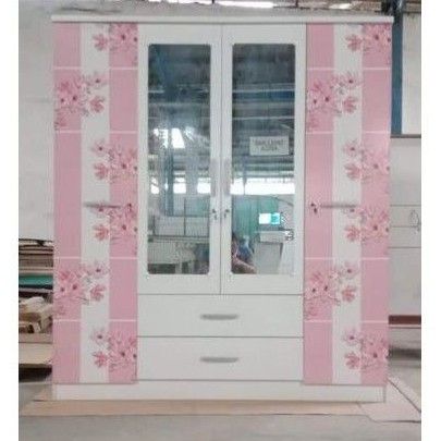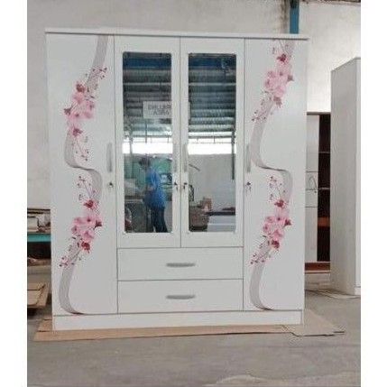 LEMARI PAKAIAN 4 PINTU LACI KACA PANJANG